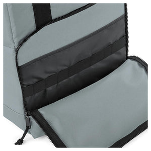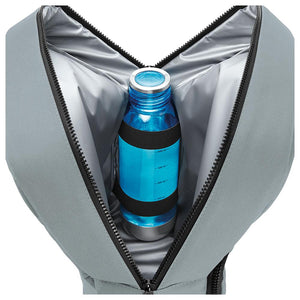 Insulated double adjustable strap backpack made from 100% recycled material. Fully wipeable liner. Top handle and smaller front pocket too.