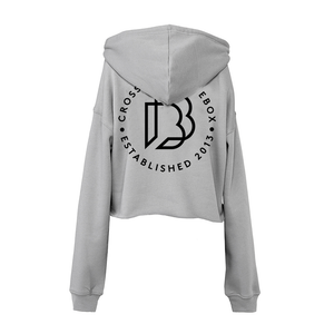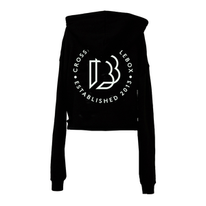 Battle Box raw edge cropped hoodie featuring a small left chest and large back print.