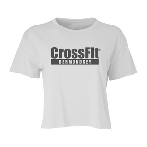 Ladies cropped T shirt featuring the CrossFit Bermondsey Logo as a large front print.