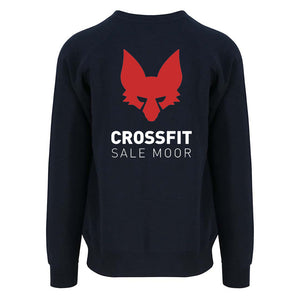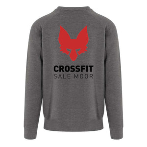 Heavyweight sweatshirt featuring the CrossFit Salemoor small left chest logo and large back print