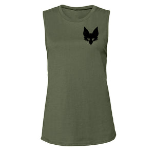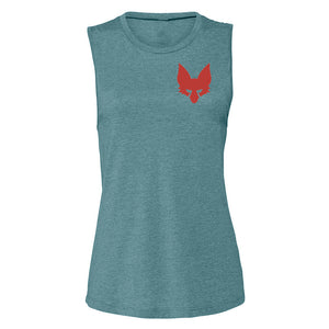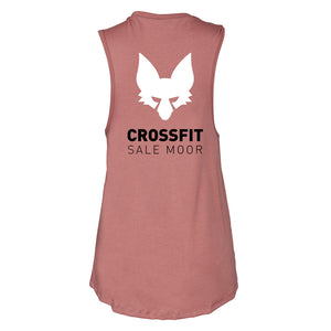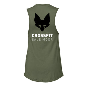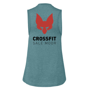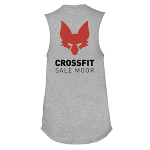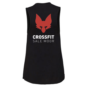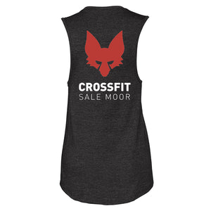 Ladies cut deep arm hole muscle vest featuring the CrossFit Salemoor small left chest logo on the front and larger back print.