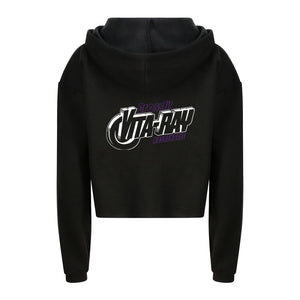Ladies cropped hoodie featuring the CrossFit Vita-Ray logo on the front left chest and large back print.