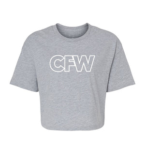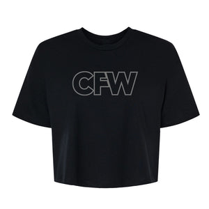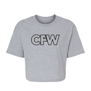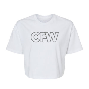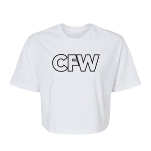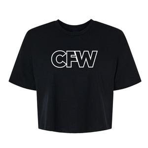 Ladies cropped T shirt featuring the CFW as a large chest print.
