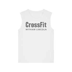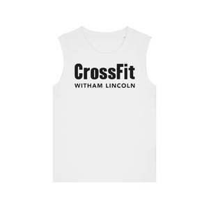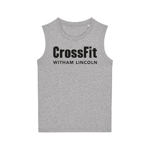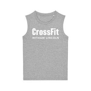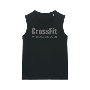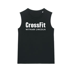 Ladies muscle vest featuring the CrossFit Witham Lincoln front chest print.