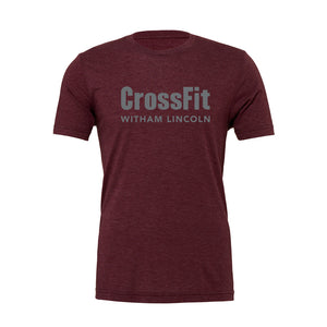 Premium quality tri blend t shirt featuring the CrossFit Witham Lincoln classic logo as a long front print.