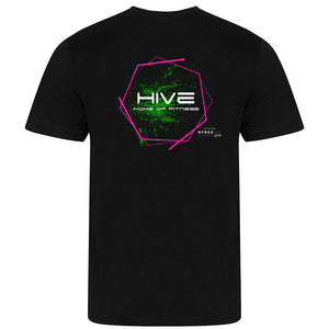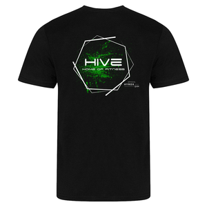 Premium quality tri blend t shirt featuring the Hive left chest image and large back print