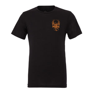 Premium quality tri blend t shirt featuring the Phoenix print on the left chest and Out Of The Ashes back print.