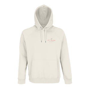 Lightweight hoodie with front pouch pockets, lined hood and draw cord. Featuring The PT Mum logo as a small left chest print and large lady back print.