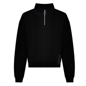 Ladies cut cropped sweatshirt with 1/4 zip and elasticated waistband. Featuring the Big Crocodile shadow logo in the bottom corner.