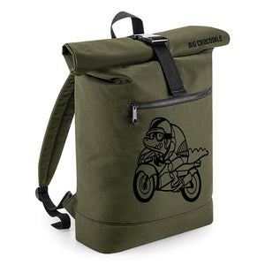 Choose your Big Crocodile image. Raised image on the front of bag and small signature on the roll down.