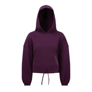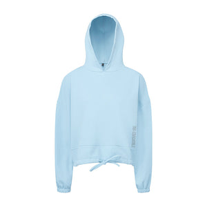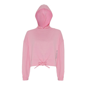 Ladies oversized cropped lightweight hoodie with drawstring at the bottom to pull in the hem.